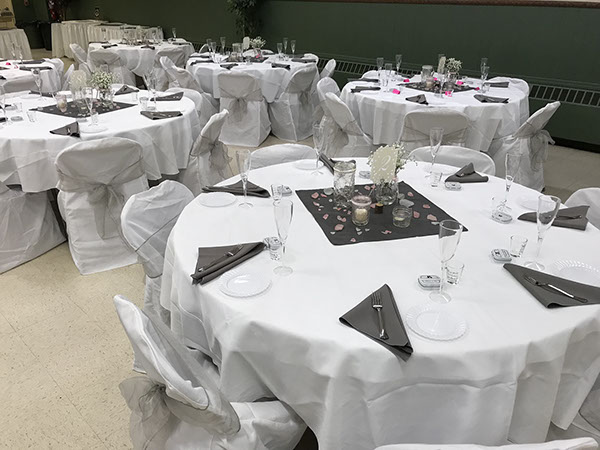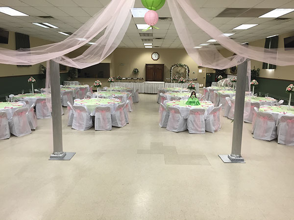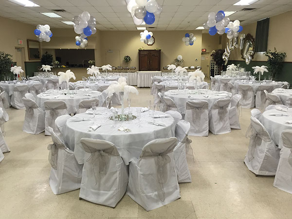 Please choose any of our Party Plans with your hall rental. You are also required to purchase our unlimited beverage plan which includes coffee, tea, sodas, juices, mixers, ice, and cups for $4.00 per person. You may provide your own alcohol/beer/wine which our bartenders will serve. No cash bar permitted.